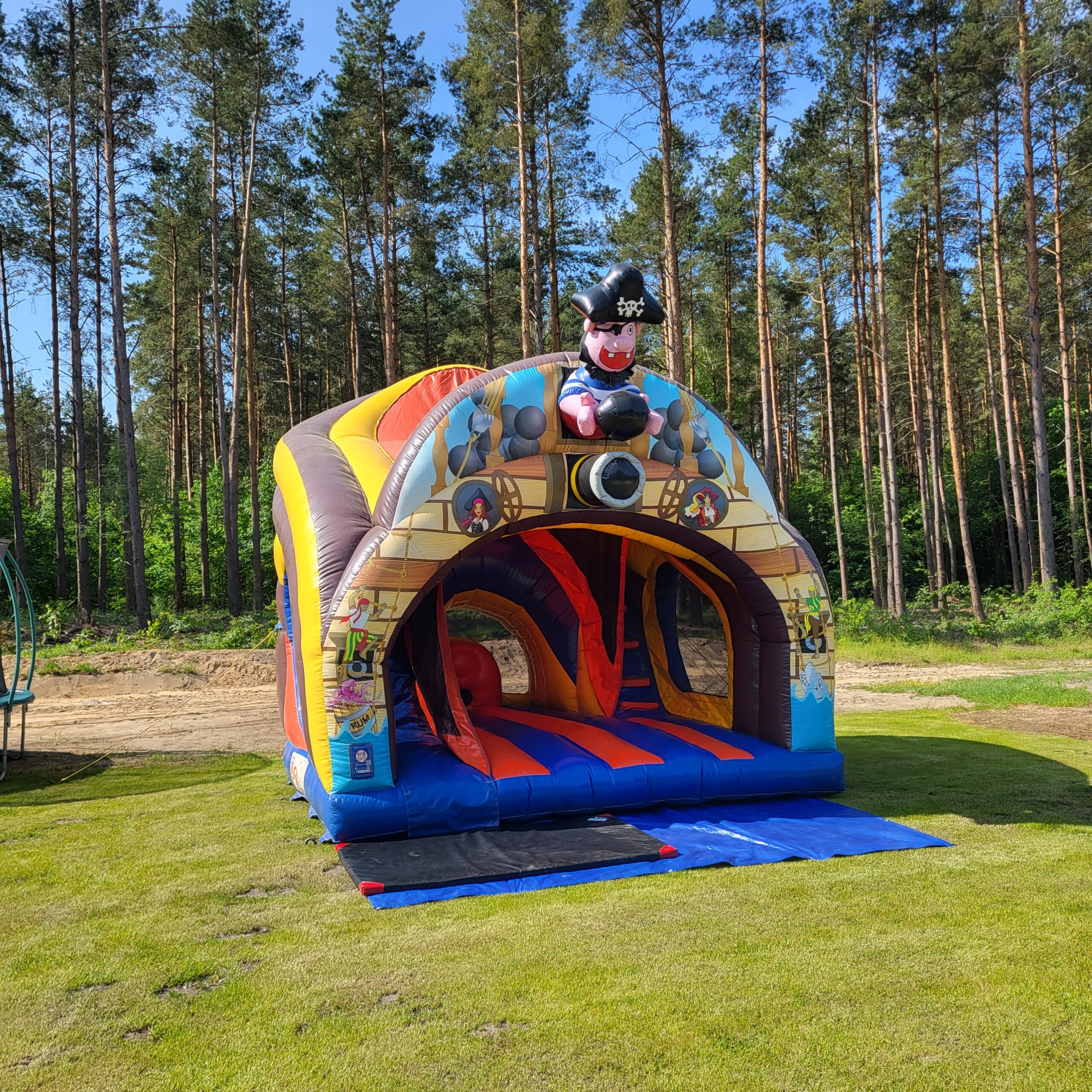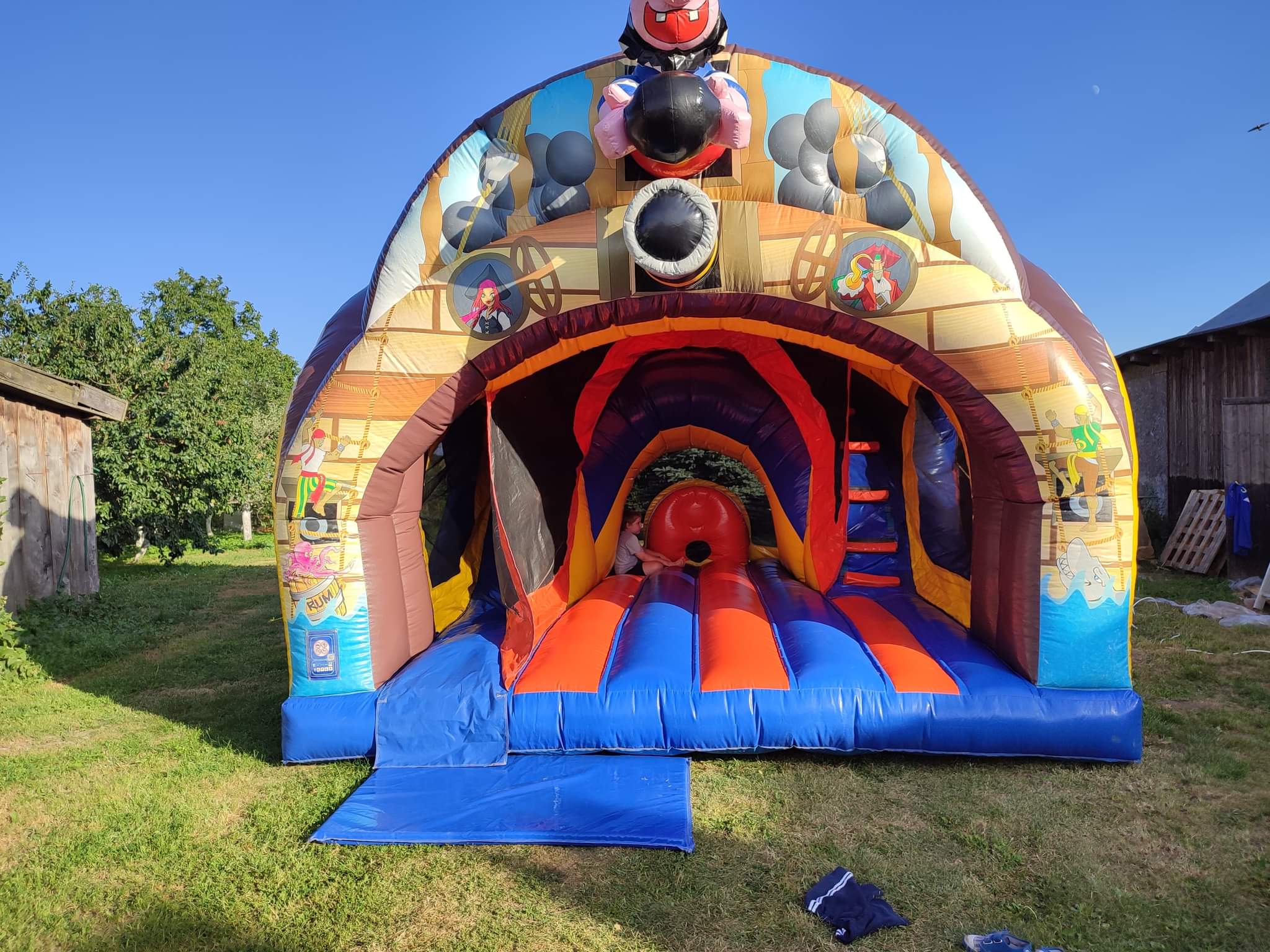 Zapraszamy do wynajmu dmuchanego zamku Pirat! Ten kolorowy i tematyczny plac zabaw z zjeżdzalnią w kształcie pirackiego statku to idealna atrakcja na przyjęcia urodzinowe, festyny czy inne wydarzenia plenerowe. Zamek jest bezpieczny, wypełniony zabawnymi elementami i zapewni mnóstwo radości każdemu dziecku. Piracki klimat i wesołe detale przeniosą małych uczestników w świat przygód na pełnym morzu. Niech zabawa zacznie się już dziś!