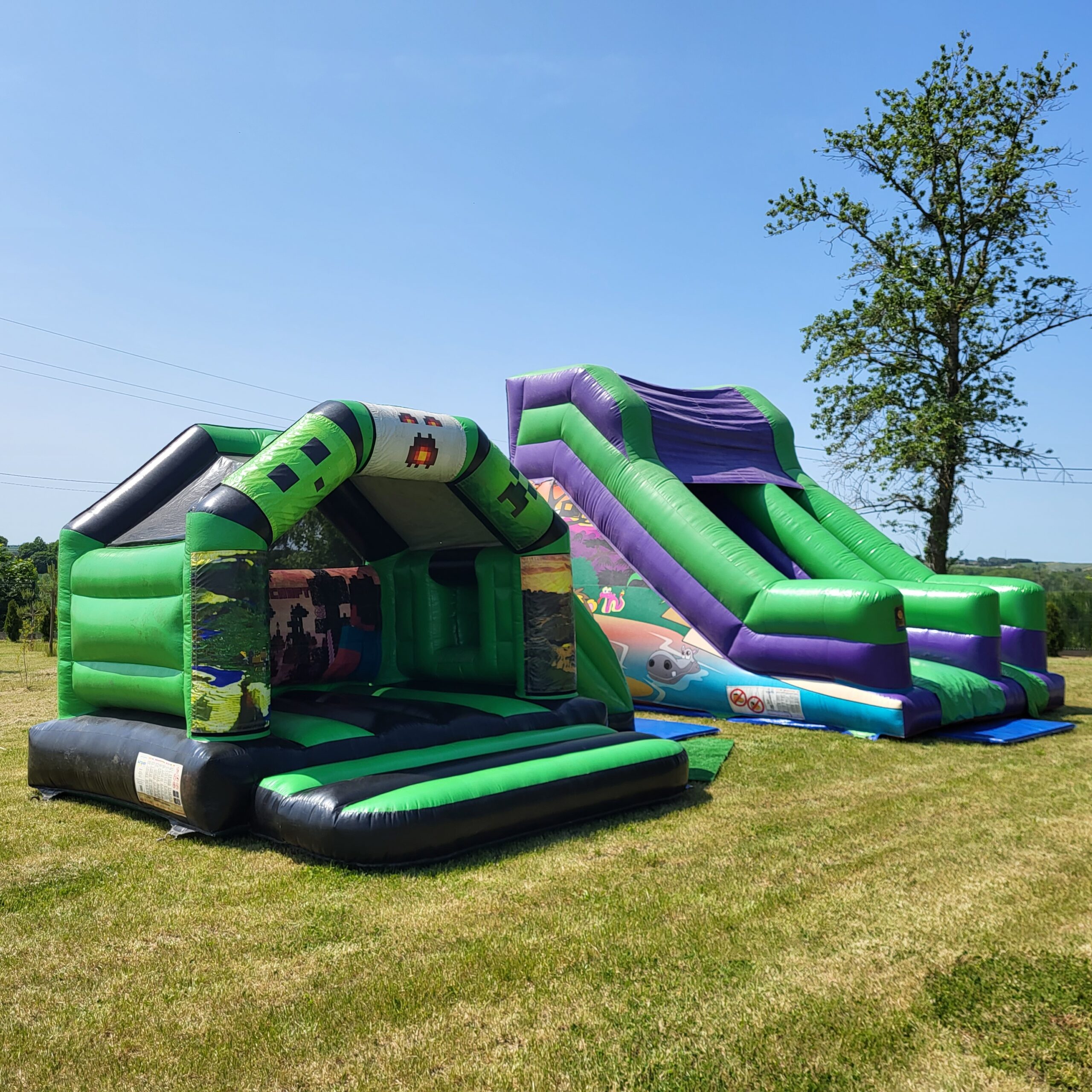 Zamek „Minecraft” charakteryzuje się unikalnym designem, który nawiązuje do charakterystycznej grafiki gry. Wśród pikselowych bloków i postaci dzieci będą mogły poczuć się jak prawdziwi bohaterowie Minecrafta. Zamek oferuje nie tylko miejsce do skakania i zabawy, ale również zjeżdżalnię, która dodaje jeszcze więcej frajdy i emocji.